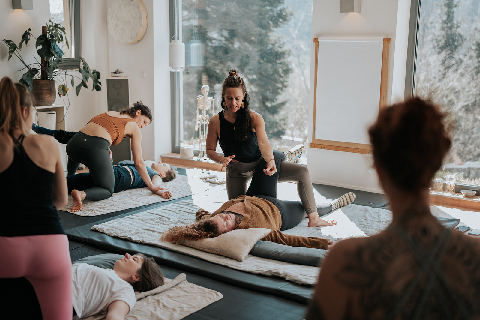 Wir verbinden Tradition und Moderne, Achtsamkeit und Anatomie sowie Spiritualität und Stabilität. In dieser Ausbildung lernst du Raum zu halten durch achtsame Bewegung.